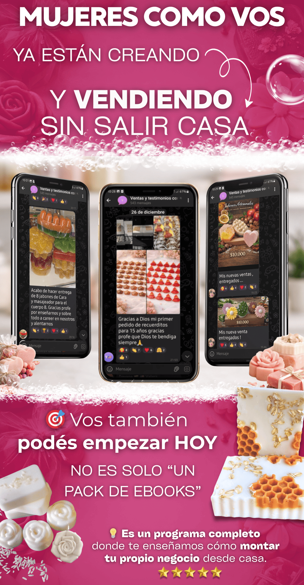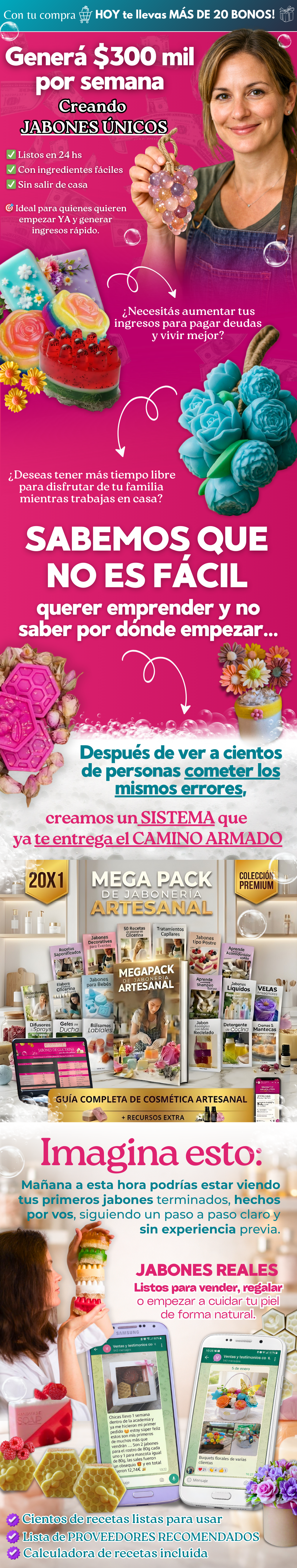 Comienza hoy y comprueba por ti misma el valor real de tener en tus manos una mini formación completa para crear y vender jabones artesanales desde casa.