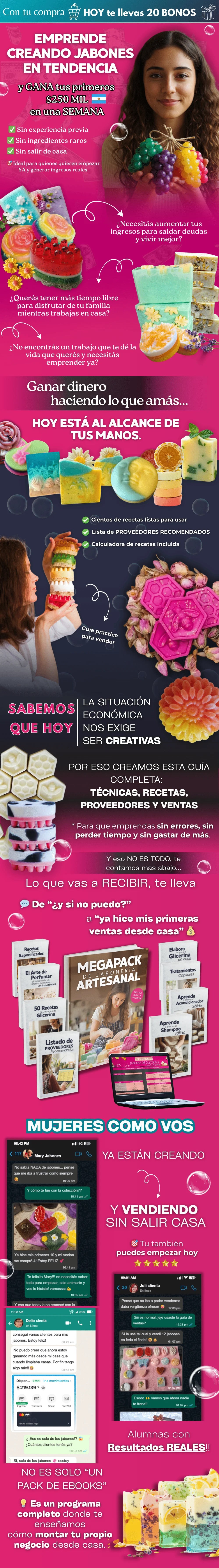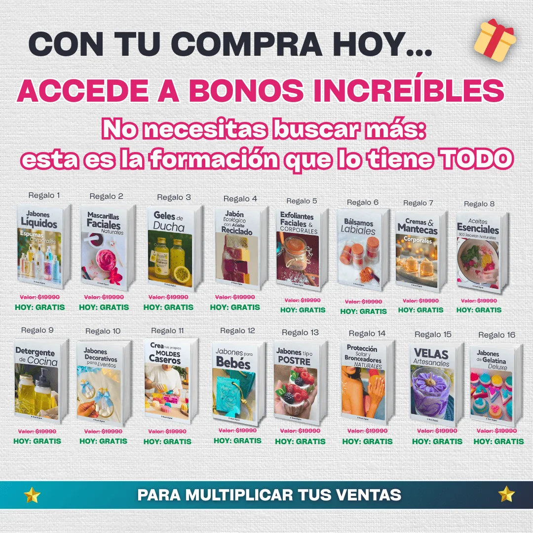 Empezá hoy y comprobá por vos misma el valor real de tener en tus manos una mini formación completa para crear y vender jabones artesanales desde casa.